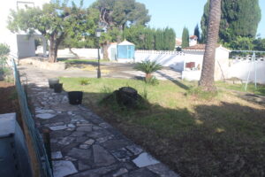 El exterior es, sin duda, uno de sus mayores atractivos: una amplia zona ajardinada con múltiples posibilidades y una bonita piscina, perfecta para disfrutar del clima mediterráneo durante todo el año. El espacio se completa con un gran garaje de 60m2, ideal para varios vehículos y zonas de almacenamiento.