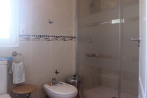 En la planta superior, se ubican tres dormitorios, dos de ellos dobles con armarios empotrados de pared a pared para tener gran superficie de almacenamiento y un espacioso baño con ducha.